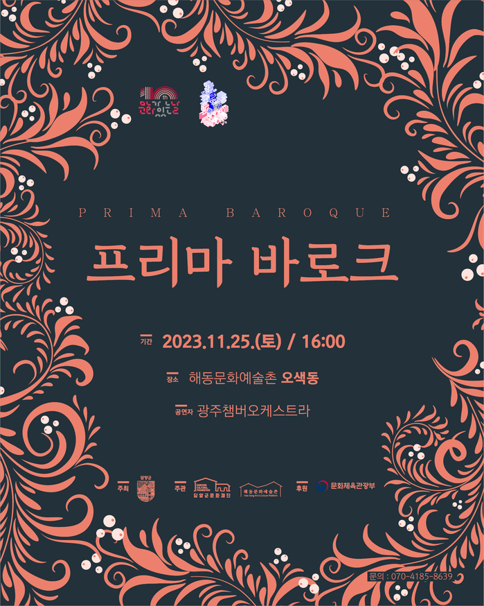 [전남=프레스뉴스] 박정철 기자=(재)담양군문화재단(이사장 이병노)은 오는 25일 토요일 오후 4시 해동문화예술촌 오색동에서 앙코르해동 공연 ‘프리마 바로크’를 개최한다고 밝혔다.
