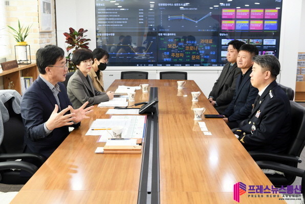 [프레스뉴스] 장현준 기자= 안산시(시장 이민근)는 지난 14일 이민근 시장이 장진수 신임 평택해양경찰서장을 접견하고 친환경 안산-대부도 뱃길 운항 등 시의 주요 해양정책에 대한 협조를 요청했다고 15일 밝혔다.
