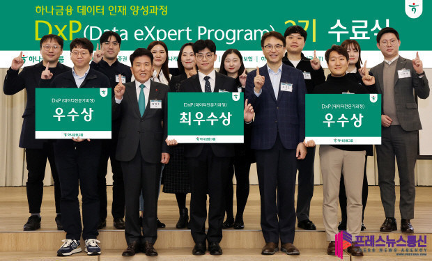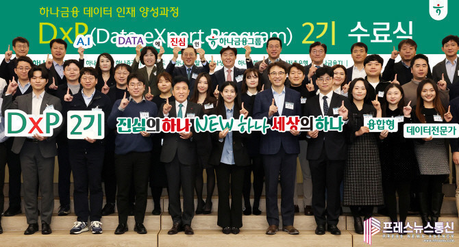 [프레스뉴스] 김대일 기자= 하나금융그룹(회장 함영주)은 지난 15일 오후 그룹 명동사옥에서 그룹 공동의『하나 DxP(Data eXpert Program) 과정』 2기 수료식을 개최하고, 그룹의 데이터 핵심인재 30명을 배출했다고 밝혔다.