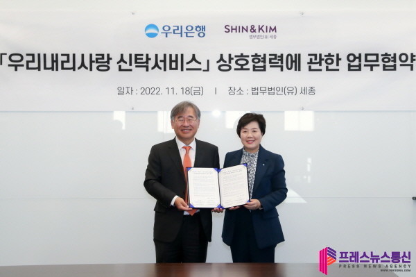 [프레스뉴스] 김대일 기자= 우리은행(은행장 이원덕)은 지난 18일 서울 종로구 소재 법무법인(유) 세종과 ‘우리내리사랑 신탁서비스 공동마케팅 업무협약’을 체결했다고 20일 밝혔다.