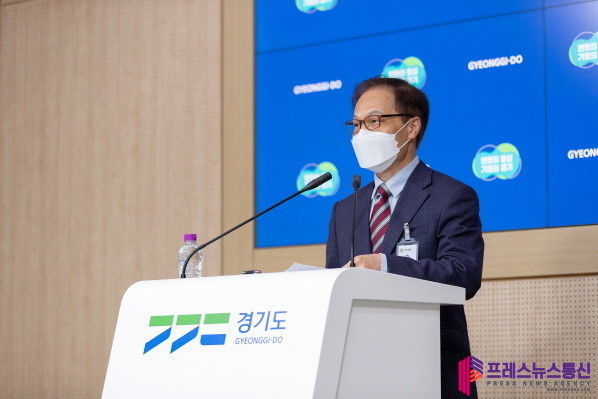 | ▲ 8일 오전 경기도청 브리핑룸에서 류인권 경기도 기획조정실장이 2022년 제2회 추가경정 예산안에 대한 기자회견을 하고 있다.(사진=경기도) |