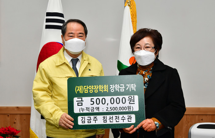 [전남=프레스뉴스] 박정철 기자= 담양군은 지난 19일 김금주 공예명인이 지역인재 육성 장학금 50만원을 기탁했다고 전했다.
