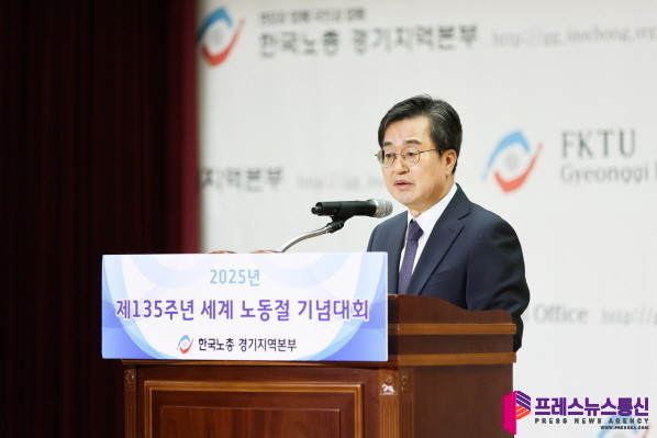 ▲지난달 30일 오전 경기종합노동복지회관에서 열린 제135주년 노동절 기념행사에서 김동연 경기도지사가 축사를 하고 있다.(사진=경기도) |