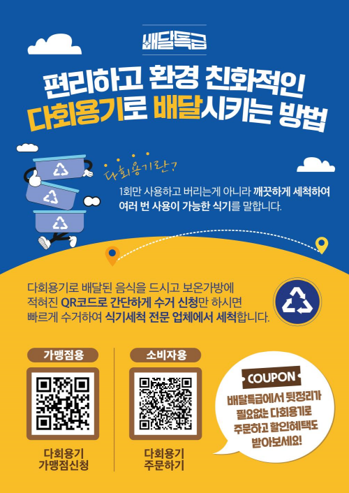 한편, 배달특급 다회용기 사업에 참여하고 싶은 가맹점은 배달특급 공식 고객센터로 문의하면 된다.