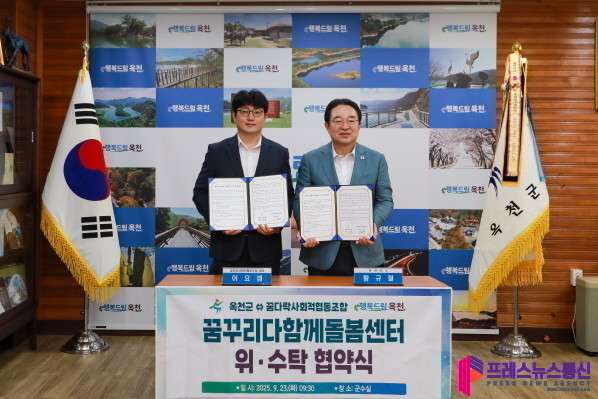 [프레스뉴스] 류현주 기자= 옥천군이 23일 꿈다락사회적협동조합(대표 이요셉)과 옥천군 다함께돌봄센터 3호점 ‘꿈꾸리다함께돌봄센터’에 대해 위⋅수탁 협약을 체결했다.