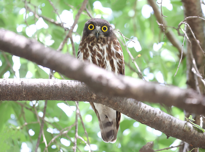 [프레스뉴스] 정재훈 기자= 천연기념물인(제324-3호) 솔부엉이가 함양군 함양군청 앞마당 느티나무에 앉아 휴식을 취하고 있다.