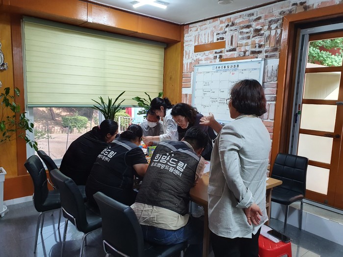▲보건복지부의 ‘2023 우수자활기업에 선정된 ㈜목포희망드림센터가 사업장을 나가기 전 회의하고 있다. (사진제공=목포시) |