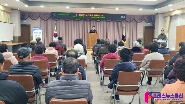 [프레스뉴스] 류현주 기자= 대한노인회 옥천군지부는 어르신에게 건강하고 활기찬 노년 생활을 위한 배움과 여가선용의 장을 제공하는 찾아가는 노인대학 입학식을 5일 동이면에서 개최했다.