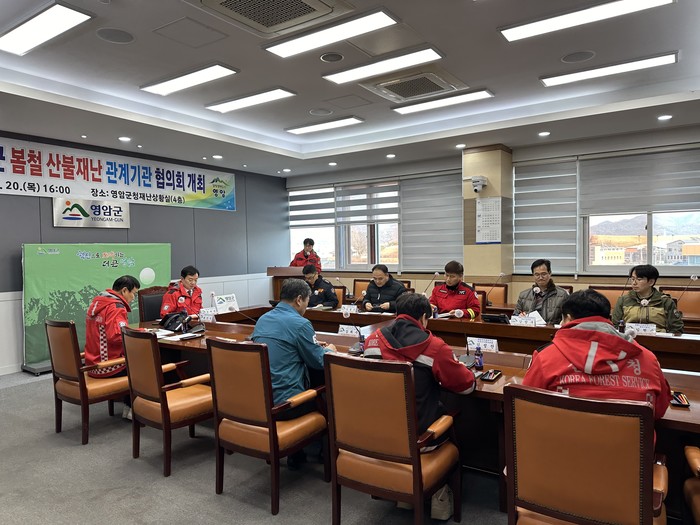 [전남=프레스뉴스] 강래성 기자= 영암군(군수 우승희)이 20일 군청 재난종합상황실에서 지역 산림청, 소방서, 경찰서 등 6개 기관이 참여하는 ‘봄철 산불 재난 관계기관 협의회’를 열고, 산불 예방 및 신속 진화 협력 방안을 논의했다.