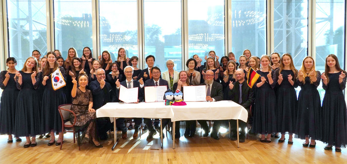 협약식 전에는 진주 출신 지휘자 정나래가 이끄는 도르트문트 청소년합창단이 한국 민요 ‘아리랑’과 ‘홀로 아리랑’을 합창해 박수갈채를 받았다.