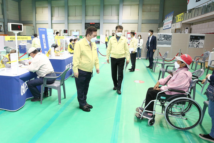| ▲ 구충곤 화순군수 접종센터 현장 점검을 실시하고 있다.(사진제공=화순군) |