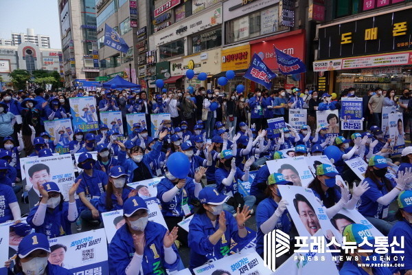 이날 유세는 주말을 맞아 산본중심상가를 찾은 많은 시민들과 선거운동원들 1,000여명이 모인 가운데 활기차게 진행됐다.