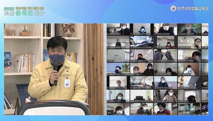 이번 연수는 오전에는 초등교감을 대상으로, 오후에는 중·고·특·각종학교 교감들을 대상으로 이뤄졌으며, 회당 400여 명 안팎의 교감(교무부장)들은 온라인 화상회의 시스템(줌)으로 접속해 연수에 참여했다. 비록 비대면이지만 모두가 한 자리에 참여한 듯한 분위기 속에서 연수가 진행됐다.