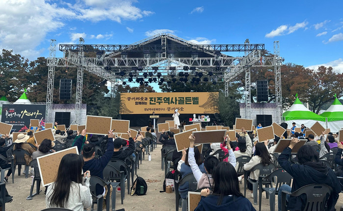 | ▲10월 19일 오후 2시 진주성 임진대첩 계사순의단 특설무대에서 ‘2024 진주역사 골든벨’ 행사가 개최된다.(2023 행사사진)사진=진주시 |