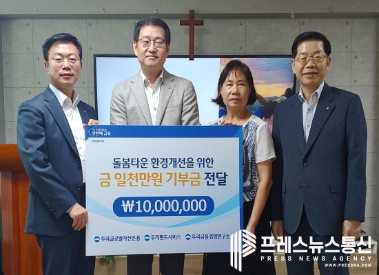 [프레스뉴스] 장현준 기자= 우리금융그룹(회장 임종룡)은 우리글로벌자산운용, 우리펀드서비스, 우리금융경영연구소 등 그룹사 3곳이 공동으로 지난 8월 집중호우로 피해를 입은 장애인 생활시설의 환경개선을 위해 기부금을 전달했다고 5일 밝혔다.