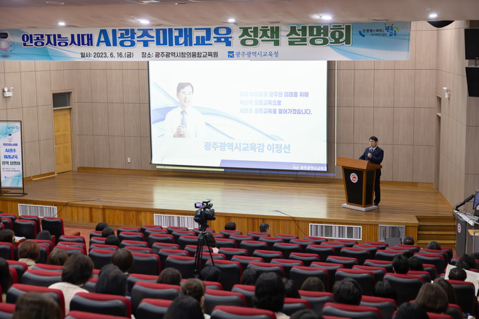 19일 시교육청에 따르면 이번 설명회는 지난 2월 발표한 AI광주미래교육의 주요 정책 및 추진 현황을 설명하기 위해 마련했다. 또 AI 코스웨어나 에듀테크를 활용한 융합 수업 사례를 공유함으로써 AI광주미래교육의 방향성을 구체적으로 학교 현장에 전달하고자 기획됐다.