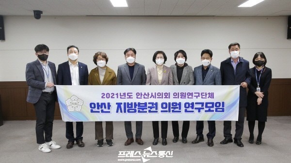[프레스뉴스] 김대일 기자= 안산시의회 의원연구단체 '안산 지방분권 의원 연구모임'이 17일 의회 대회의실에서 간담회를 갖고 지방자치법 전부개정에 따른 정책 연구를 위해 그간 활동해 온 사항들을 갈무리했다.