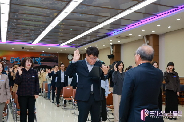 이날 직원 대표로 육안국 미래전략국장 선창에 따라 직원들은 친절과 봉사를 바탕으로 한 행정 서비스 실천에 대한 굳은 의지를 다졌다.