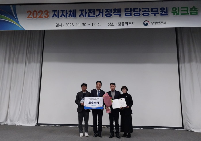 [프레스뉴스] 정호일 기자= 진주시가 ‘2023년 자전거 이용 활성화 우수사례 경진대회’에서 ‘최우수상’을 수상했다.