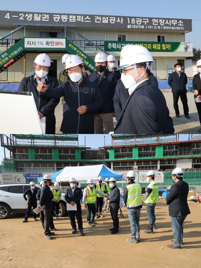 ▲최임락 행복도시건설청 차장이 지난 27일 대한민국 안전대전환 일환으로 공동캠퍼스 건설현장을 찾았다.(사진=행복청) |