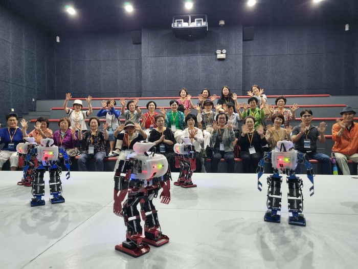 ▲광주청춘학교 학습자들이 로봇댄스를 관람하고 환호하고 있다./광주시교육청 제공 |