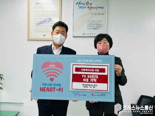 [프레스뉴스] 장현준 기자= 안산시(시장 이민근)는 22일 (재)경기테크노파크(원장 유동준)로부터 관내 사회복지시설을 위한 TV(55인치) 6대를 기탁받았다.