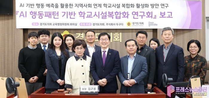 [프레스뉴스] 류현주 기자= 경기도의회 의원연구단체 ‘AI 행동패턴 기반 학교시설복합화 연구회’(회장 김근용 의원)는 지난 25일, 도의회 교육행정위원회 회의실에서 『AI 기반 행동 예측을 활용한 지역사회 연계 학교시설 복합화 활성화 방안』 연구용역 최종보고회를 개최했다.