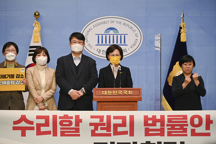 [광주=프레스뉴스] 강래성 기자= 정의당 강은미 국회의원은 9일(목) 국회 소통관에서 정의당 기후정의선대위, 정의당 6411민생선대위, 소비자단체협의회와 함께 <수리할 권리에 관한 법률안(강은미의원 대표발의)>을 소개하는 기자회견을 했다.