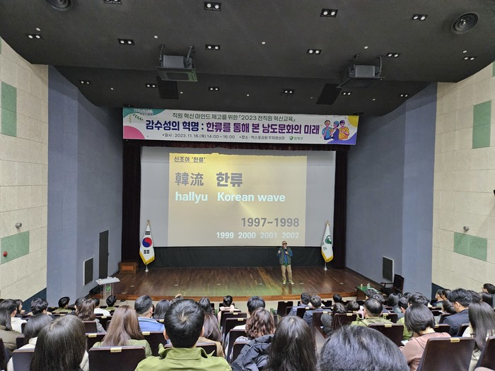 이어 김종휘(前 서울문화재단 대표)가 ‘감수성의 혁명 : 한류를 통해 본 남도문화의 미래’라는 주제로 K-문화가 전 세계적으로 인기있는 현재의 상황을 1세대 문화기획자의 시각으로 해석하고 공감하며 활용하는 방안에 대해 교육했다.