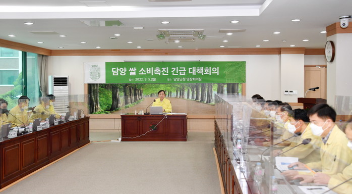 담양군(군수 이병노)은 5일 담양 쌀 소비촉진 활성화를 위한 긴급 대책회의를 개최하고 쌀 소비 감소와 쌀값 폭락으로 어려움을 호소하고 있는 지역 내 농가를 돕기 위해 다각적인 쌀 소비촉진 활성화 운동을 전개한다고 밝혔다.