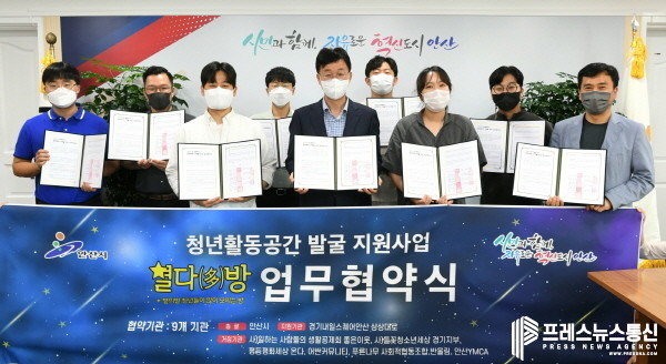 [프레스뉴스] 장현준 기자= 안산시(시장 이민근)와 안산시 청년소통공간 상상대로(센터장 문지원)는 14일 청년 네트워크를 활성화하고 청년들의 다양한 도전을 지원하기 위해 청년활동공간 발굴 7개 거점기관과 업무협약을 체결했다.
