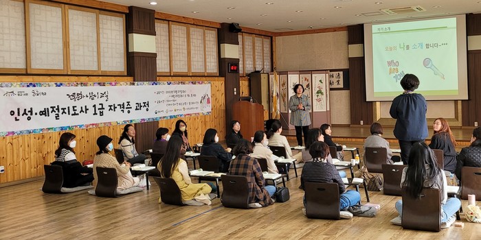 지난 21일 개강한 전통문화 이음이 교실은 ‘인성·예절강사 1급 자격증’ 취득 과정으로 오는 4월 25일까지 매주 화요일에 진행된다.