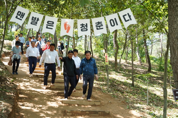 시는 2일 몸과 마음이 청년이 되는 ‘오감만족 맨발길 걷기 행사’를 성황리에 개최하고 맨발 길을 정식 개통한다.
