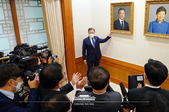 그간 전통적으로 국무회의가 개최되어 온 청와대 본관 세종실의 전실에는 역대 대한민국 대통령의 초상화가 걸려 있다. 국무회의 시작 전 문 대통령의 초상화를 공개했고, 문 대통령은 국무위원들에게 직접 본인의 초상화에 대해 소개했다.