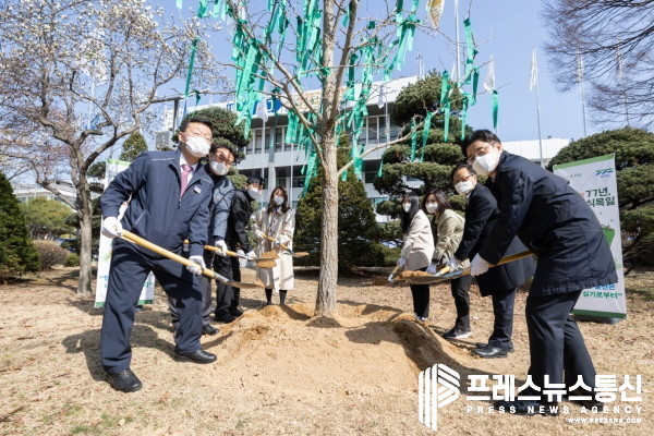 [프레스뉴스] 강보선 기자= 반세기 넘는 팔달산 청사 시대가 마무리되는 가운데, 경기도가 29일 오전 오병권 경기도지사 권한대행 주재로 경기도청 신관 앞 정원에서 ‘제77회 식목일 기념 나무 심기 행사’를 개최했다.
