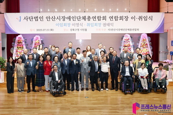 [프레스뉴스] 장현준 기자= 안산시(시장 이민근)는 안산시 장애인단체총연합회(회장 권태익)가 지난 15일 상록시민홀에서 안산시장애인단체총연합회장 이·취임식을 개최했다고 16일 밝혔다.