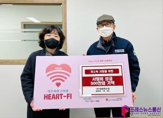 [프레스뉴스] 장현준 기자= 안산시(시장 이민근)는 22일 (주)성원특수강(대표 조원환)으로부터 취약계층을 위한 사랑의 성금 500만 원을 기탁받았다.