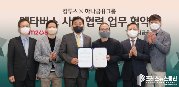 [프레스뉴스] 김대일 기자=하나금융그룹(회장 김정태)과 컴투스 그룹(의장 송병준)은 15일 하나금융그룹 명동 사옥에서 「메타버스 금융 인프라 구축」을 위한 업무협약을 체결했다고 밝혔다.