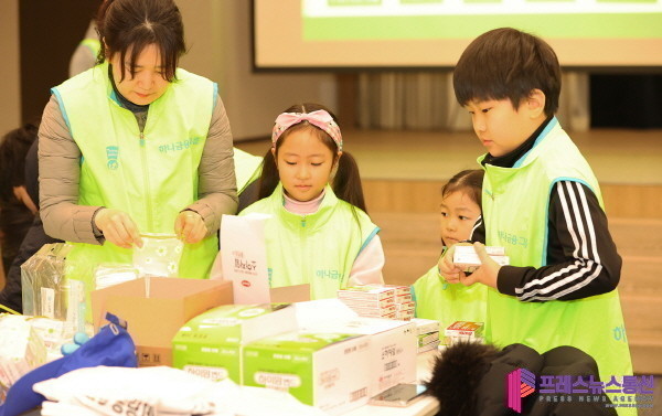 ▲지난 8일 봉사활동에 참여한 임직원과 가족들이 지역 소상공인들에게 전달할 행복상자를 만들고 있다.(사진=하나금융그룹) |