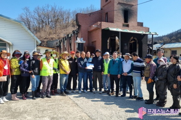 [프레스뉴스] 류현주 기자= 옥천군 주민자치연합회(회장 김대훈)가 최근 발생한 산불로 큰 피해를 입은 경북 의성군 단촌면을 돕기 위해 7일 현장을 방문해 화재 피해 복구 봉사활동을 진행하고 성금 200만 원을 전달했다.