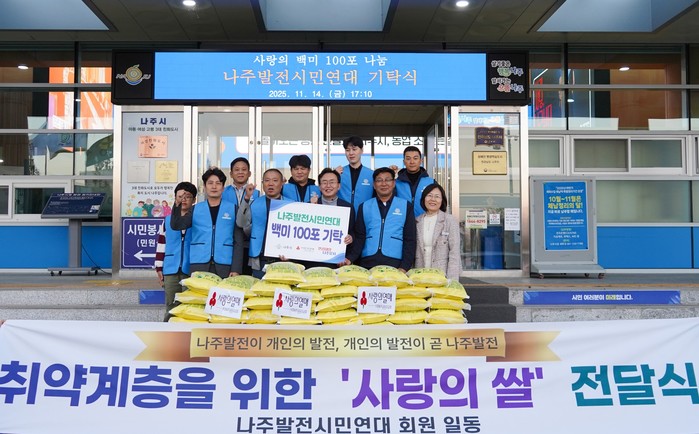 윤병태 나주시장은 “지역사회에서 이어지는 나눔이 우리 시 복지의 든든한 기반이 되고 있다”며 “정성을 모아주신 나주발전시민연대에 감사드리고 필요한 곳에 온정이 고루 전해질 수 있도록 최선을 다하겠다”고 말했다.