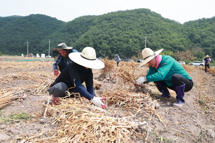 이번 지원에는 오태완 군수를 비롯한 공무원 등 440여 명이 참여해 양파·마늘 재배 농가 21곳(5.1ha)의 수확 작업을 도왔다.
