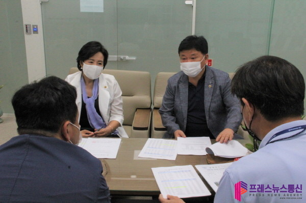 [프레스뉴스] 김대일 기자= 경기도의회 군포 출신 정윤경 의원(더불어민주당, 군포1), 성기환 의원(더불어민주당, 군포2)이 8월 4일(목) 경기도 문화체육관광국장, 문화종무과 종무1팀장으로부터 ‘2023년 전통사찰 보수정비사업’에 관한 보고를 받았다.