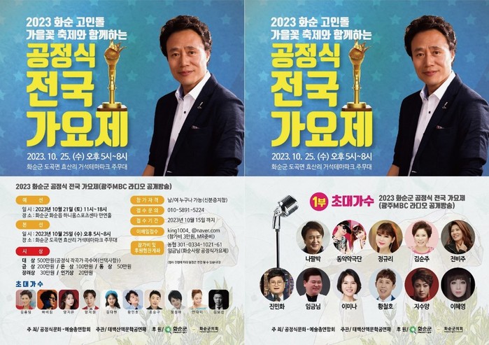 25일 화순 출신 공정식 작곡가와 함께 『공정식 전국 가요제』 김용임·바비킴·양지은·김다현·황민호