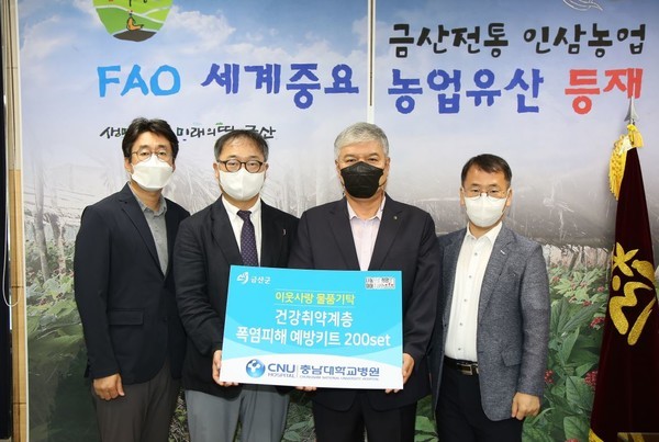 한편, 충남대학교병원 공공보건의료사업단은 지난해 용당댐 방류 및 집중호우로 피해를 입은 금산군에 행복꾸러미 키트 50박스를 전달한 바 있다