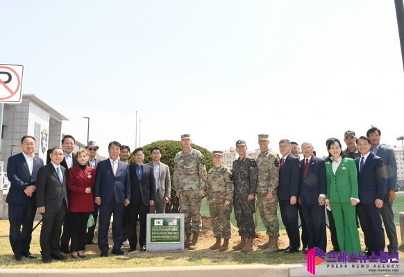 [프레스뉴스] 김대일 기자= 경기도와 미2사단이 평택시 캠프 험프리스 미2사단 건물 앞에서 식목행사를 열었다.
