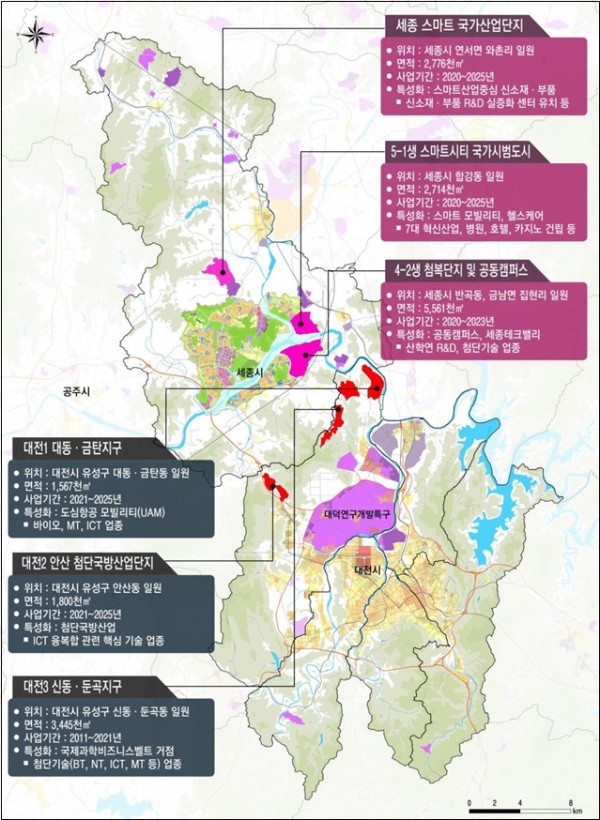 대전시와 세종시는 이번 용역에 양 도시의 강점을 최대한 반영하여 산업적.기능적으로 연결하고, 최근 개정된 ‘경제자유구역의 지정 및 운영에 관한 특별법’ 내용에 부응할 수 있는 첨단.핵심전략산업 육성 정책도 포함한다는 방침이다.