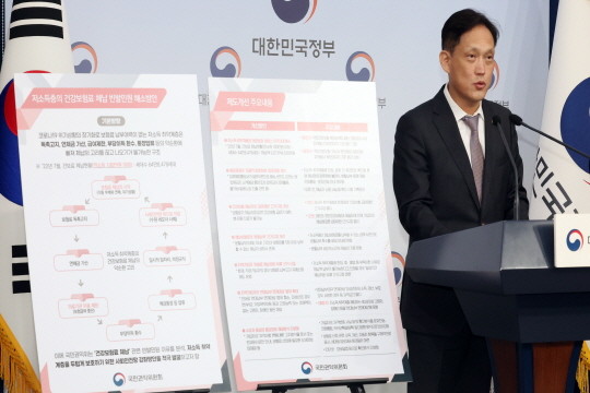 | ▲김태규 국민권익위원회 부위원장이 23일 정부서울청사 별관에서 저소득층 건강보험료 체납 빈발민원 해소 방안 발표를 하고 있다.(사진= 뉴스1) |