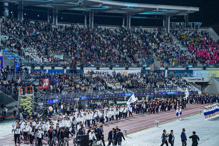 | ▲제104회 전국체전 개막식에서 선수들이 입장하고 있다.(사진제공=목포시) |