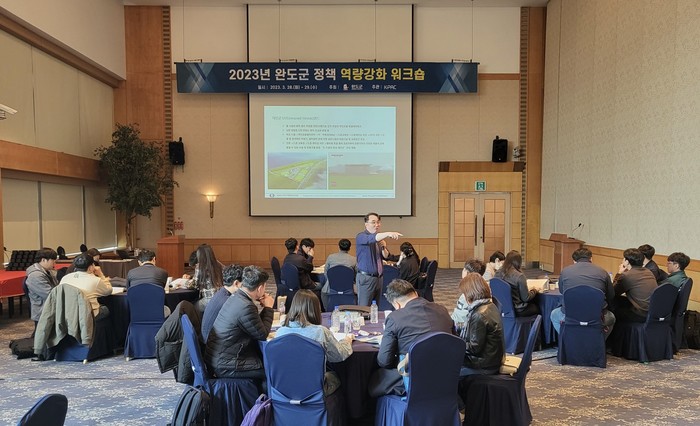 ▲완도군은 정책 개발 및 사업 기획을 위한 공직자들의 실무 역량을 향상시키고자 ‘정책 역량 강화 워크숍’을 가졌다.(사진제공=완도군) |